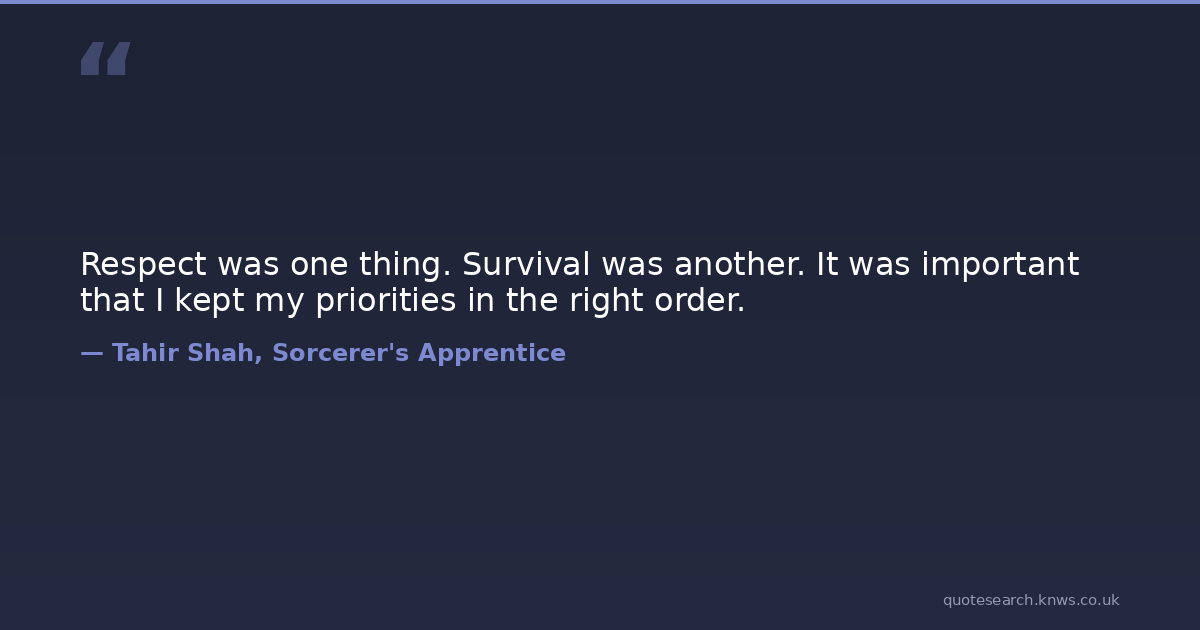 Respect was one thing. Survival was another. It was important that I kept my priorities in the right order.