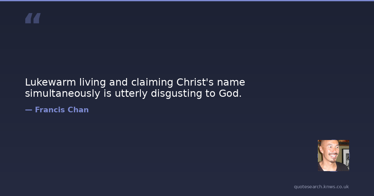 Lukewarm living and claiming Christ's name simultaneously is utterly disgusting to God.