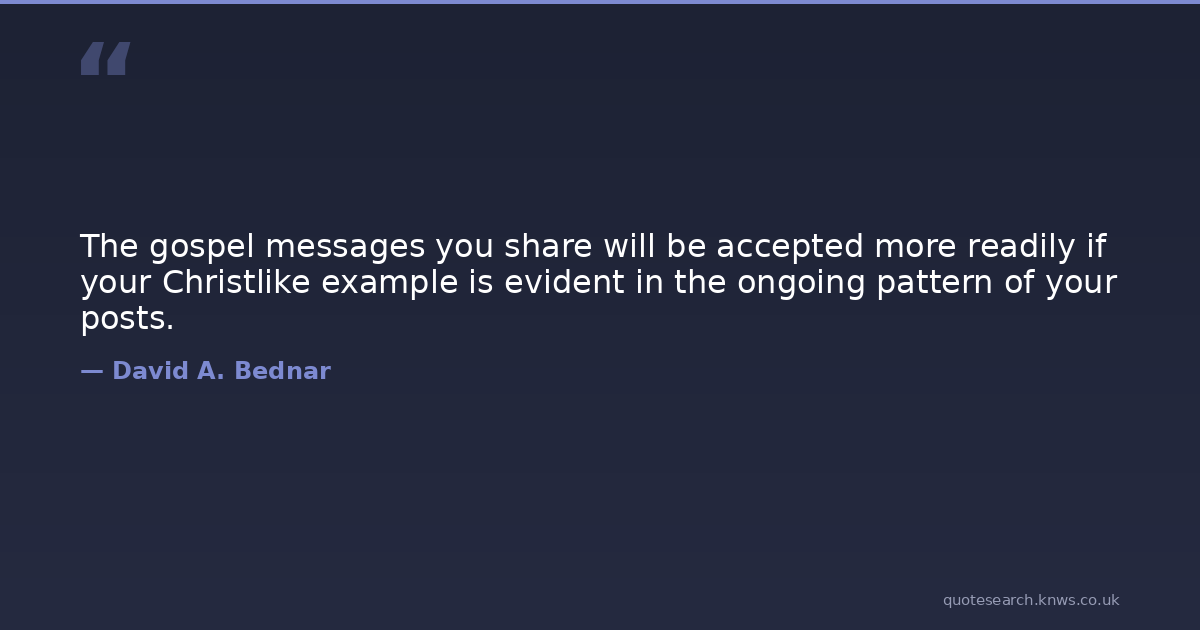 The gospel messages you share will be accepted more readily if your Christlike example is evident in the ongoing pattern of your posts.
