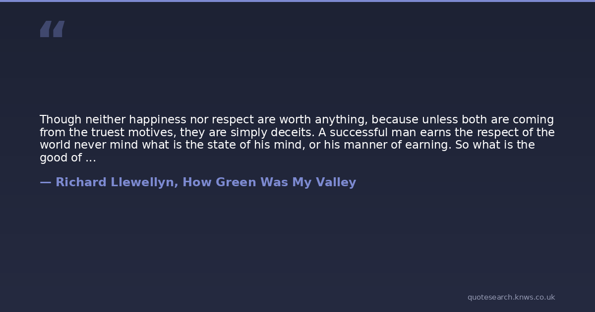 Though neither happiness nor respect are worth anything, because unless both are coming from the truest motives, they are simply deceits. A successful man earns the respect of the world never mind what is the state of his mind, or his manner of earning. So what is the good of such respect, and how happy will such a man be in himself? And if he is what passes for happy, such a state is lower than the self-content of the meanest animal.