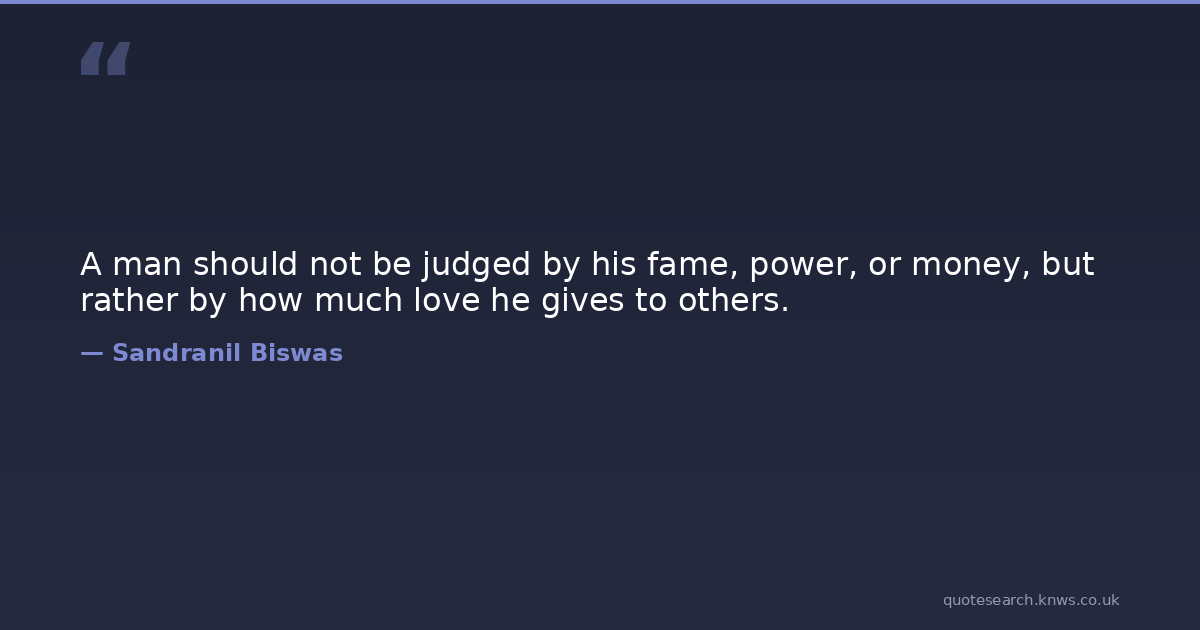 A man should not be judged by his fame, power, or money, but rather by how much love he gives to others.
