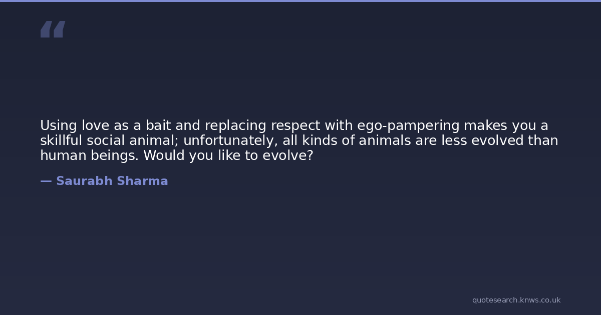 Using love as a bait and replacing respect with ego-pampering makes you a skillful social animal; unfortunately, all kinds of animals are less evolved than human beings. Would you like to evolve?