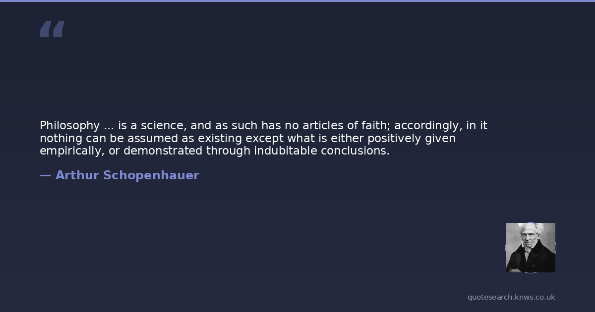 Philosophy ... is a science, and as such has no articles of faith; accordingly, in it nothing can be assumed as existing except what is either positively given empirically, or demonstrated through indubitable conclusions.