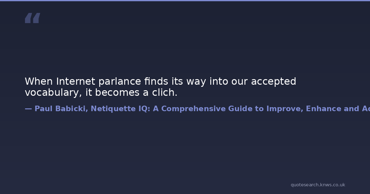 When Internet parlance finds its way into our accepted vocabulary, it becomes a clich. communication email etiquette marketing-advice netiquette vocabulary Download Image Share on X Share on Facebook Copy Link