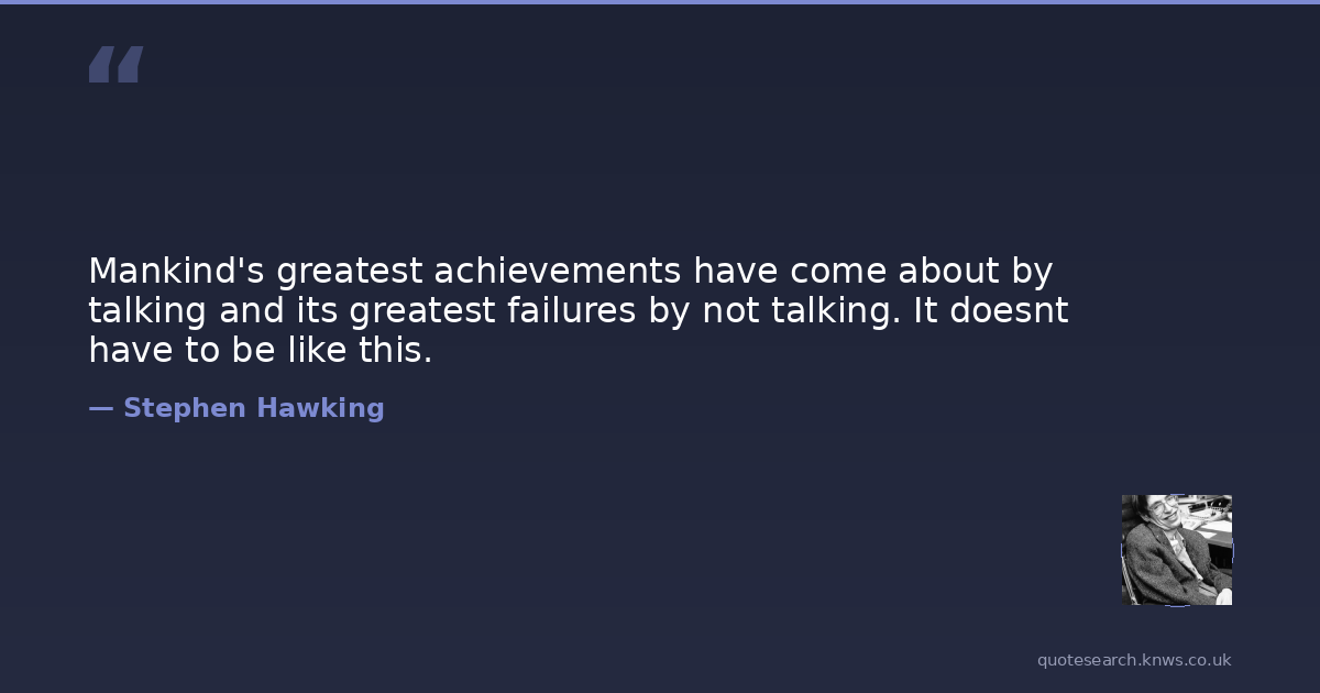 Mankind's greatest achievements have come about by talking and its greatest failures by not talking. It doesnt have to be like this.