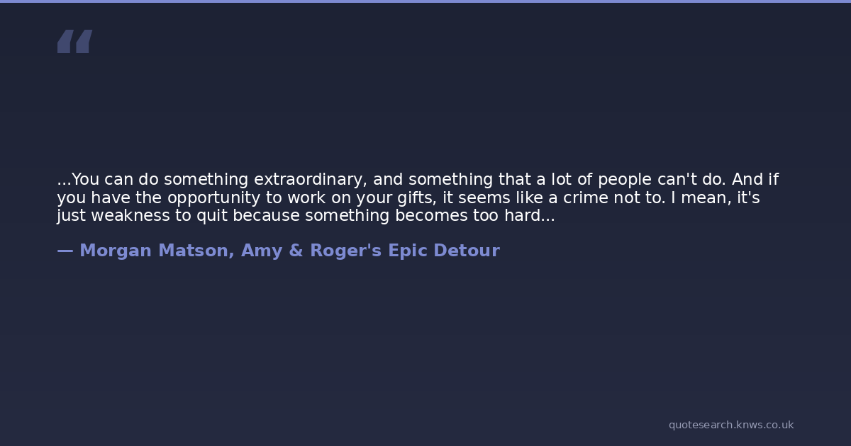 ...You can do something extraordinary, and something that a lot of people can't do. And if you have the opportunity to work on your gifts, it seems like a crime not to. I mean, it's just weakness to quit because something becomes too hard...