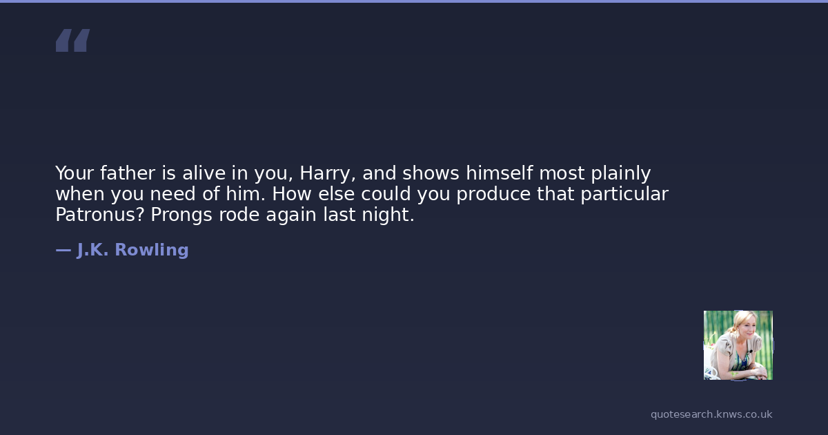 Your father is alive in you, Harry, and shows himself most plainly when you need of him. How else could you produce that particular Patronus? Prongs rode again last night.
