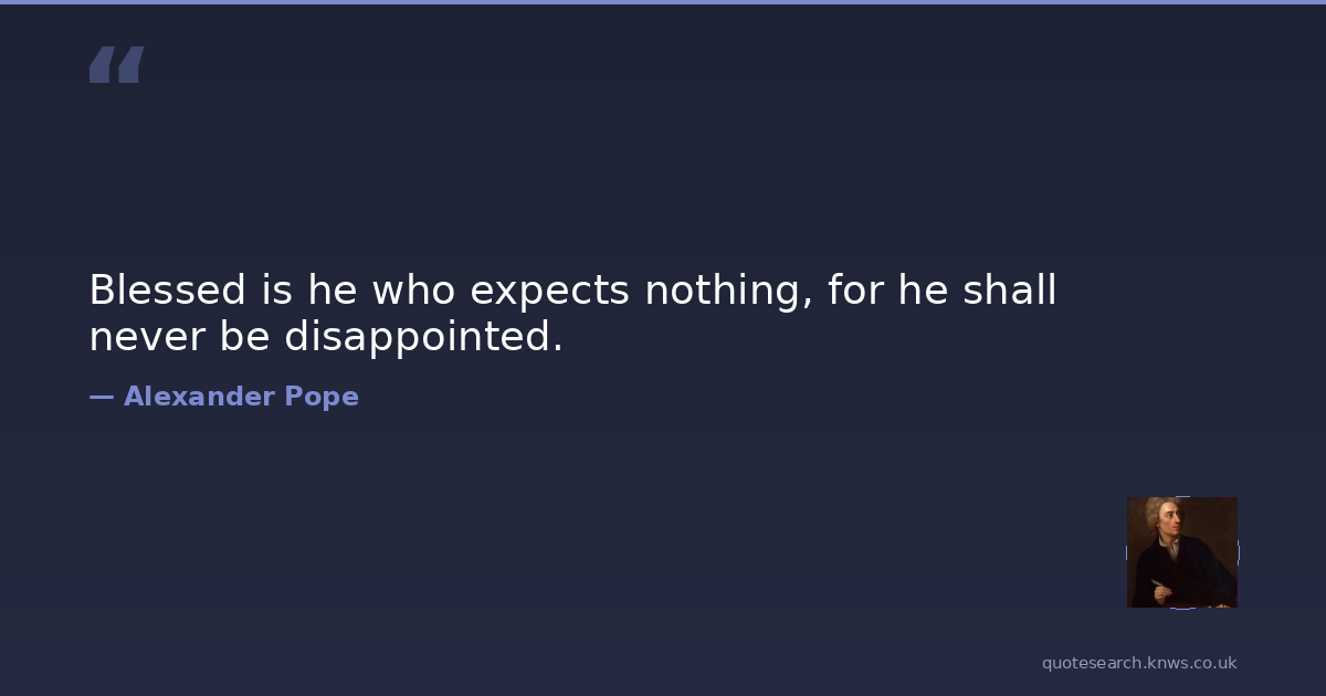 Blessed is he who expects nothing, for he shall never be disappointed.