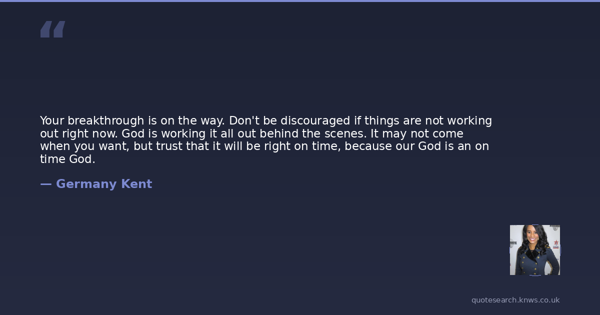 Your breakthrough is on the way. Don't be discouraged if things are not working out right now. God is working it all out behind the scenes. It may not come when you want, but trust that it will be right on time, because our God is an on time God.
