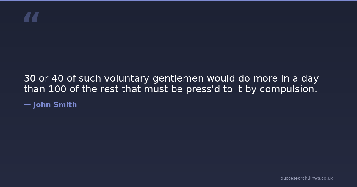 30 or 40 of such voluntary gentlemen would do more in a day than 100 of the rest that must be press'd to it by compulsion.