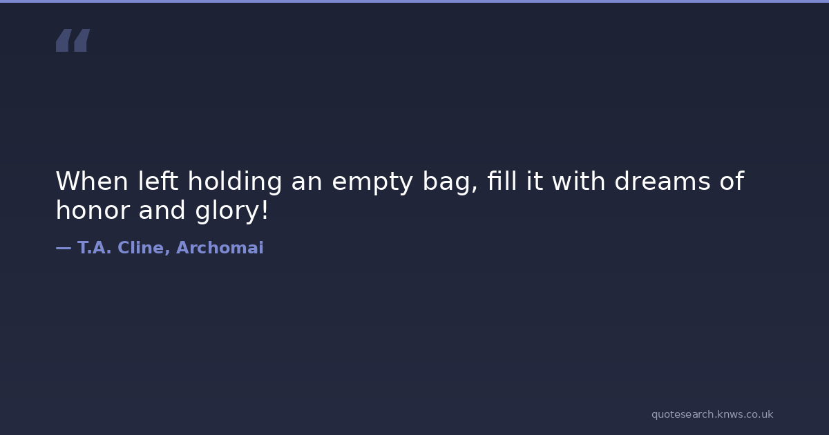 When left holding an empty bag, fill it with dreams of honor and glory!