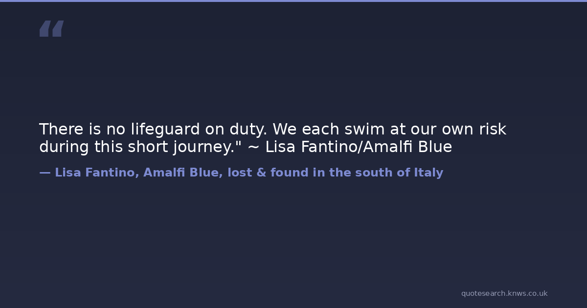There is no lifeguard on duty. We each swim at our own risk during this short journey." ~ Lisa Fantino/Amalfi Blue encouragement Download Image Share on X Share on Facebook Copy Link