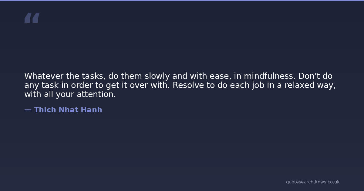 Whatever the tasks, do them slowly and with ease, in mindfulness. Don't do any task in order to get it over with. Resolve to do each job in a relaxed way, with all your attention.
