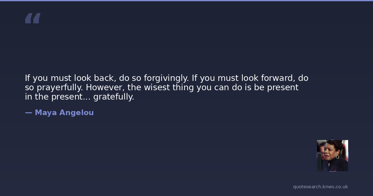 If you must look back, do so forgivingly. If you must look forward, do so prayerfully. However, the wisest thing you can do is be present in the present... gratefully.