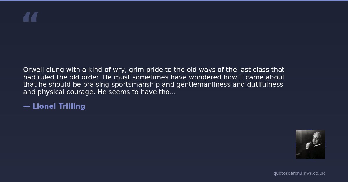 Orwell clung with a kind of wry, grim pride to the old ways of the last class that had ruled the old order. He must sometimes have wondered how it came about that he should be praising sportsmanship and gentlemanliness and dutifulness and physical courage. He seems to have thought, and very likely he was right, that they might come in handy as revolutionary virtues.