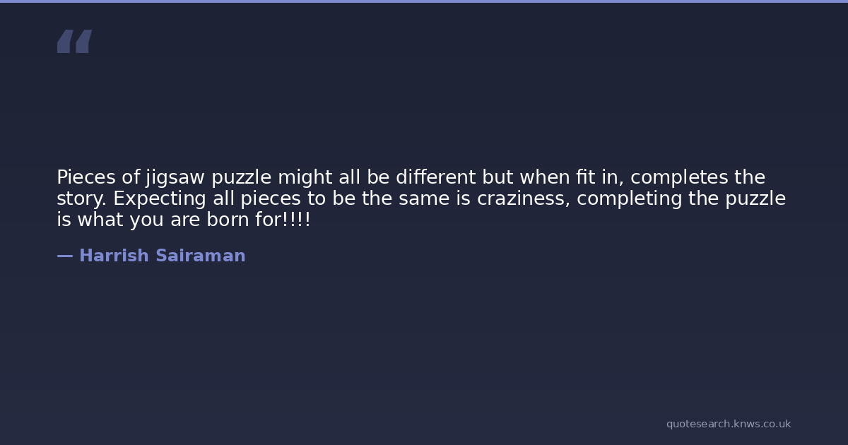 Pieces of jigsaw puzzle might all be different but when fit in, completes the story. Expecting all pieces to be the same is craziness, completing the puzzle is what you are born for!!!!