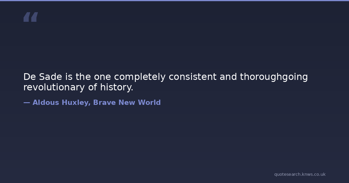De Sade is the one completely consistent and thoroughgoing revolutionary of history.