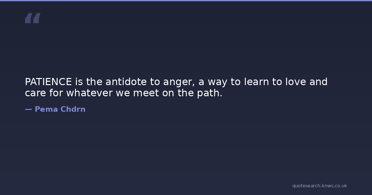 PATIENCE is the antidote to anger, a way to learn to love and care for whatever we meet on the path.