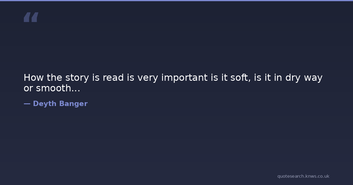 How the story is read is very important is it soft, is it in dry way or smooth... dry how read smooth story Download Image Share on X Share on Facebook Copy Link