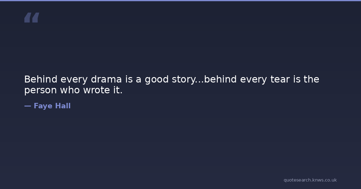 Behind every drama is a good story...behind every tear is the person who wrote it. australian-authors drama faye-hall romane story tear writing Download Image Share on X Share on Facebook Copy Link
