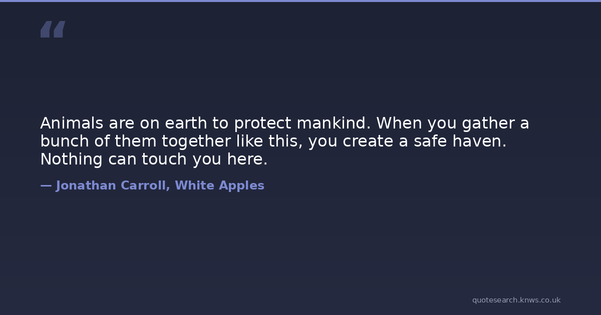 Animals are on earth to protect mankind. When you gather a bunch of them together like this, you create a safe haven. Nothing can touch you here.