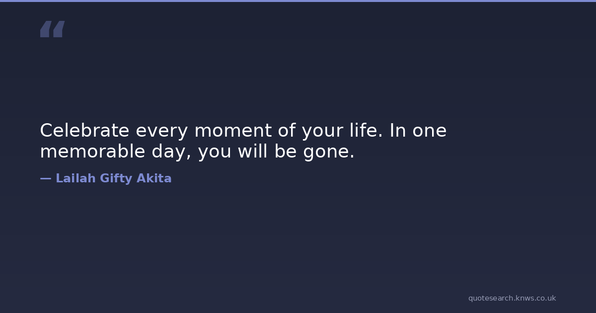 Celebrate every moment of your life. In one memorable day, you will be gone.