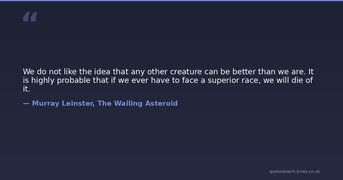 We do not like the idea that any other creature can be better than we are. It is highly probable that if we ever have to face a superior race, we will die of it.