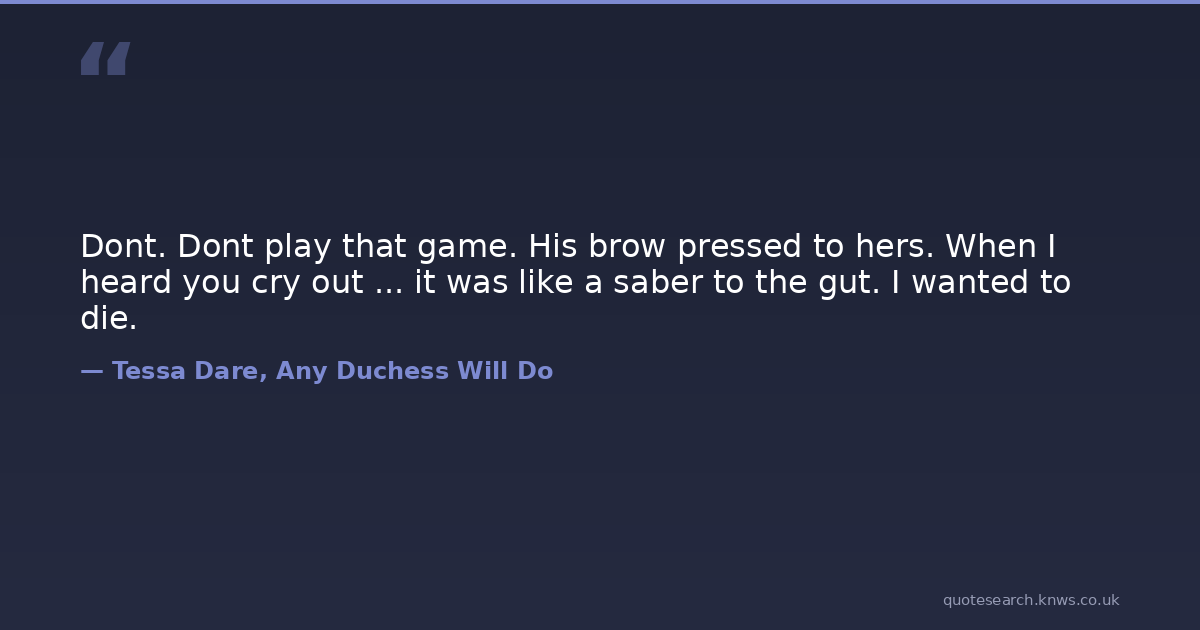 Dont. Dont play that game. His brow pressed to hers. When I heard you cry out ... it was like a saber to the gut. I wanted to die.