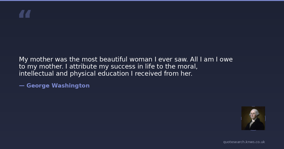 My mother was the most beautiful woman I ever saw. All I am I owe to my mother. I attribute my success in life to the moral, intellectual and physical education I received from her.