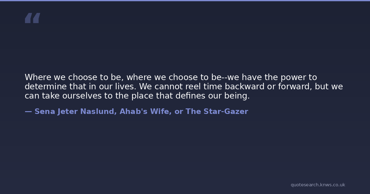 Where we choose to be, where we choose to be--we have the power to determine that in our lives. We cannot reel time backward or forward, but we can take ourselves to the place that defines our being.
