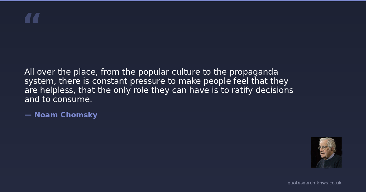 All over the place, from the popular culture to the propaganda system, there is constant pressure to make people feel that they are helpless, that the only role they can have is to ratify decisions and to consume.