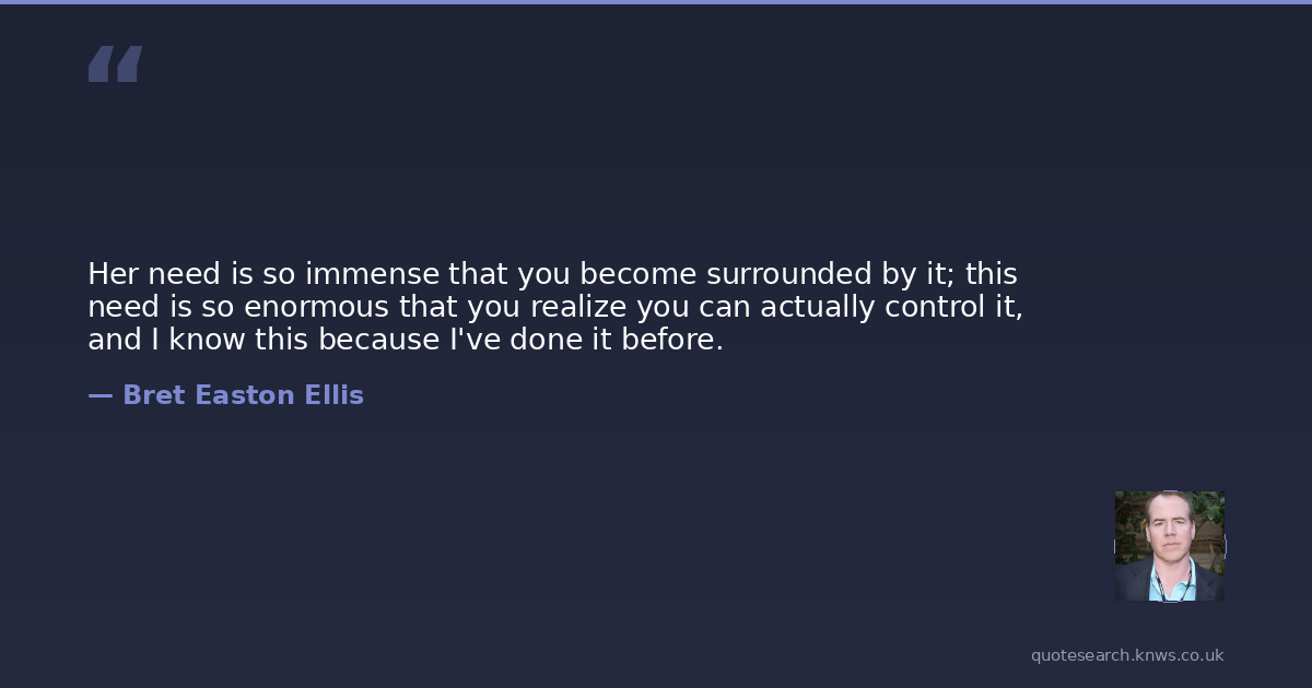 Her need is so immense that you become surrounded by it; this need is so enormous that you realize you can actually control it, and I know this because I've done it before.