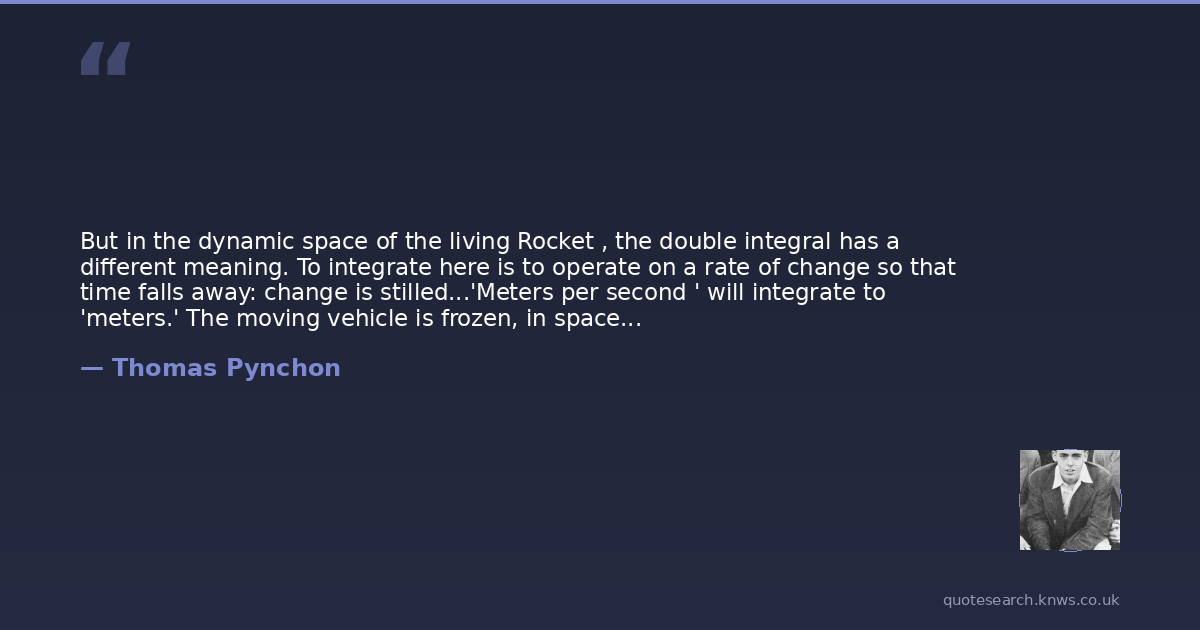 But in the dynamic space of the living Rocket , the double integral has a different meaning. To integrate here is to operate on a rate of change so that time falls away: change is stilled...'Meters per second ' will integrate to 'meters.' The moving vehicle is frozen, in space, to become architecture, and timeless. It was never launched. It never did fall.