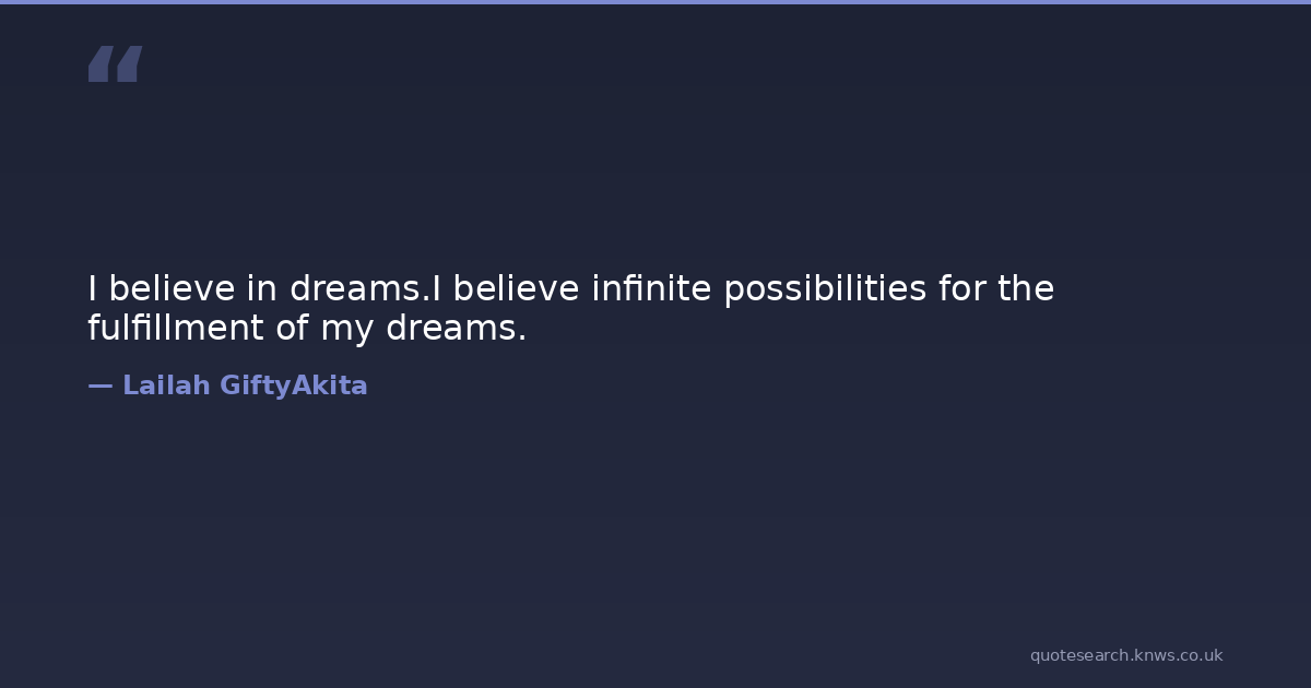 I believe in dreams.I believe infinite possibilities for the fulfillment of my dreams.