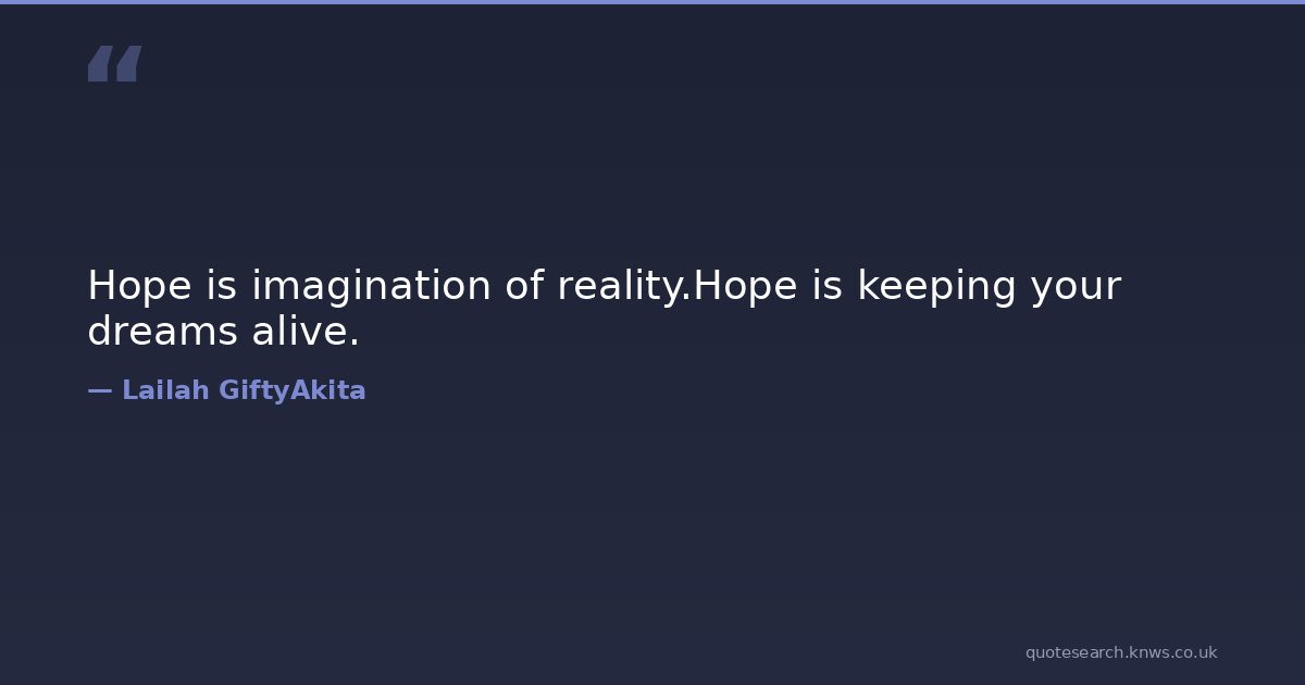 Hope is imagination of reality.Hope is keeping your dreams alive. dreams-quotes hopeful-and-encouraging hopeful-heart hopefulness Download Image Share on X Share on Facebook Copy Link