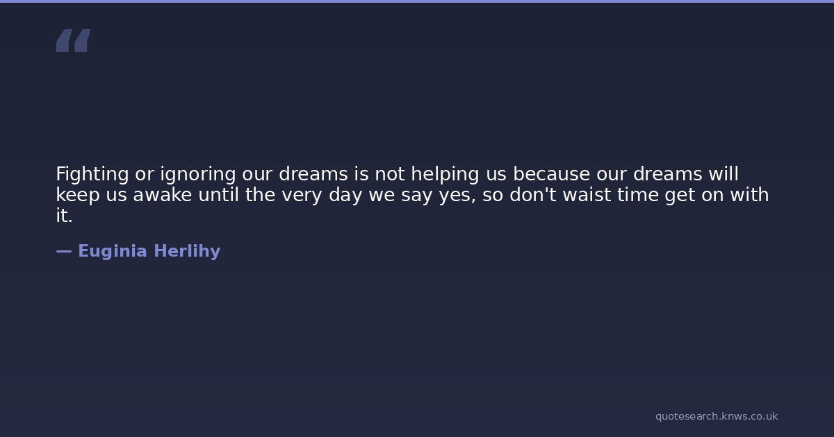 Fighting or ignoring our dreams is not helping us because our dreams will keep us awake until the very day we say yes, so don't waist time get on with it.