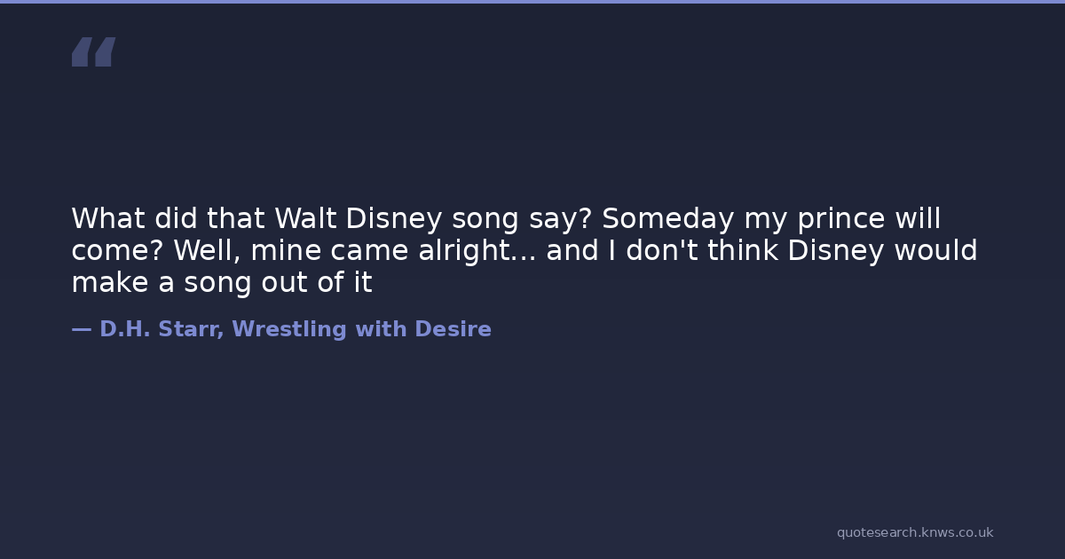 What did that Walt Disney song say? Someday my prince will come? Well, mine came alright... and I don't think Disney would make a song out of it