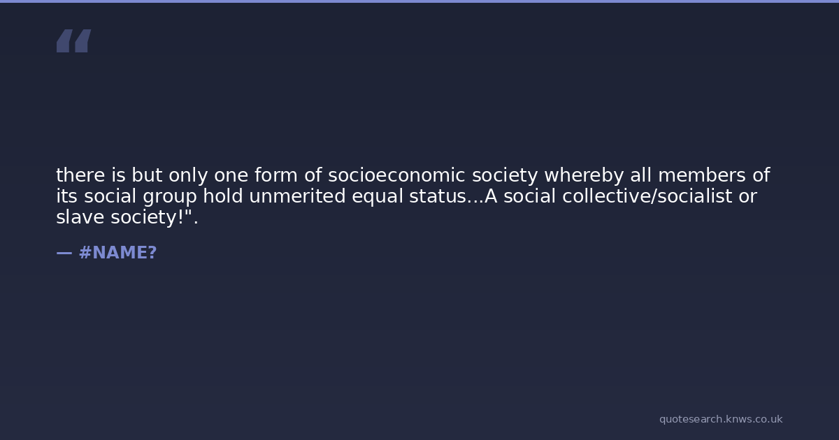 there is but only one form of socioeconomic society whereby all members of its social group hold unmerited equal status...A social collective/socialist or slave society!".