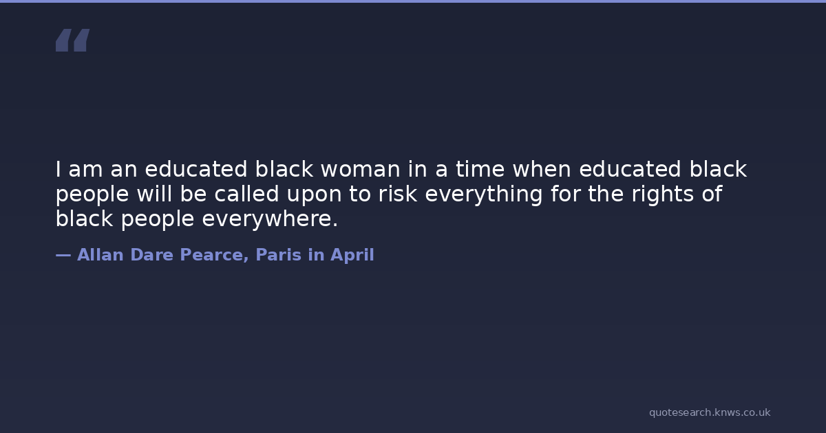 I am an educated black woman in a time when educated black people will be called upon to risk everything for the rights of black people everywhere.