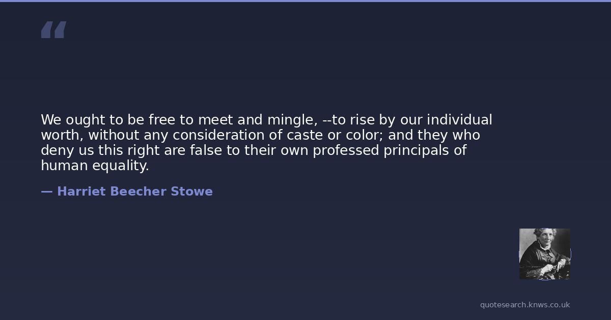We ought to be free to meet and mingle, --to rise by our individual worth, without any consideration of caste or color; and they who deny us this right are false to their own professed principals of human equality.