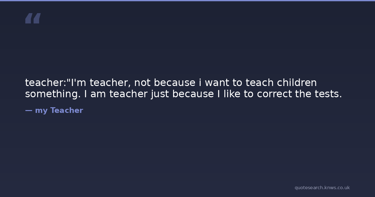 teacher:"I'm teacher, not because i want to teach children something. I am teacher just because I like to correct the tests.