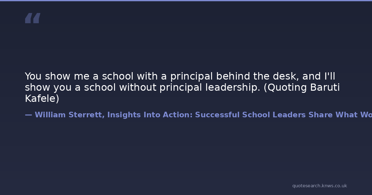 You show me a school with a principal behind the desk, and I'll show you a school without principal leadership. (Quoting Baruti Kafele)