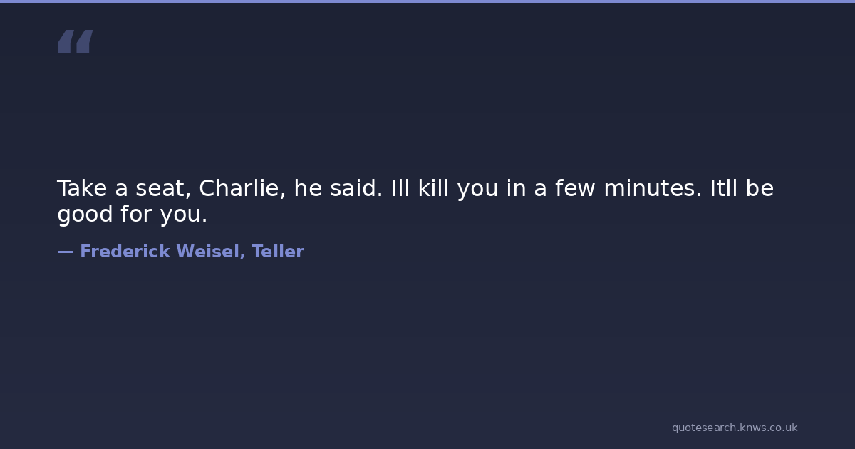 Take a seat, Charlie, he said. Ill kill you in a few minutes. Itll be good for you.
