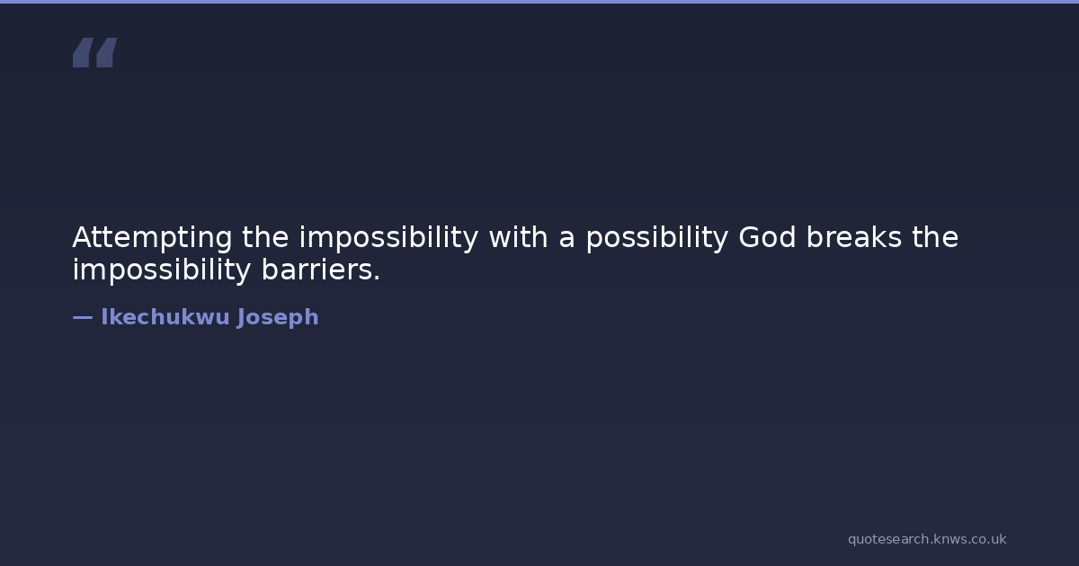 Attempting the impossibility with a possibility God breaks the impossibility barriers. christian-living leadership-development Download Image Share on X Share on Facebook Copy Link