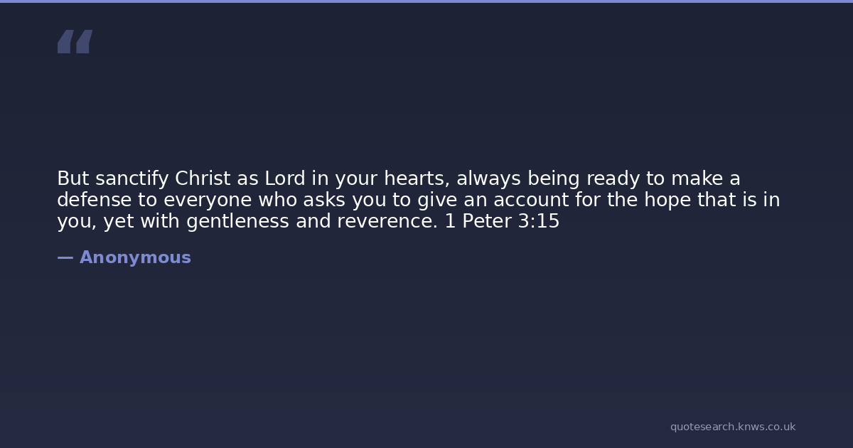 But sanctify Christ as Lord in your hearts, always being ready to make a defense to everyone who asks you to give an account for the hope that is in you, yet with gentleness and reverence. 1 Peter 3:15