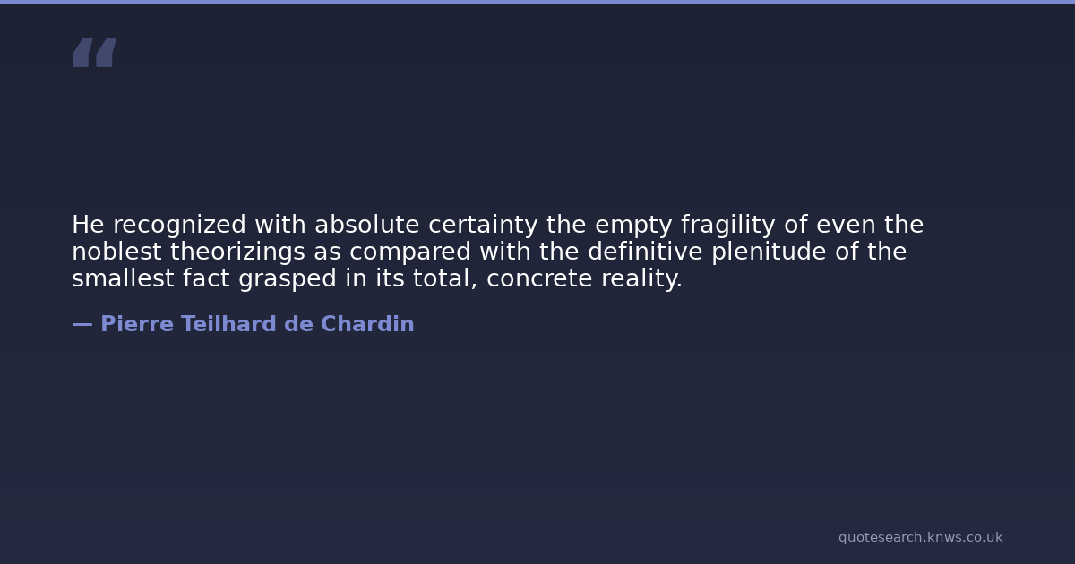 He recognized with absolute certainty the empty fragility of even the noblest theorizings as compared with the definitive plenitude of the smallest fact grasped in its total, concrete reality.