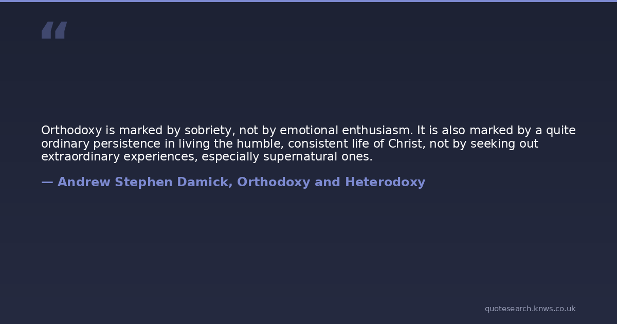 Orthodoxy is marked by sobriety, not by emotional enthusiasm. It is also marked by a quite ordinary persistence in living the humble, consistent life of Christ, not by seeking out extraordinary experiences, especially supernatural ones.
