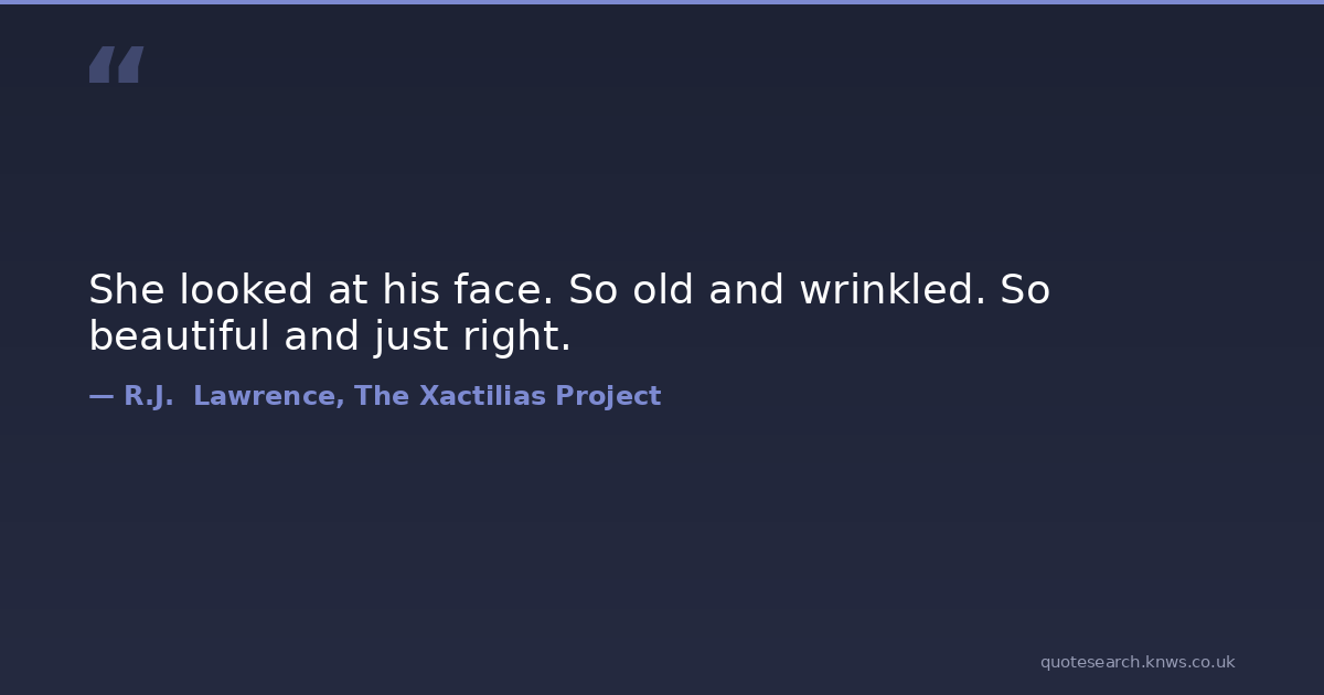 She looked at his face. So old and wrinkled. So beautiful and just right.