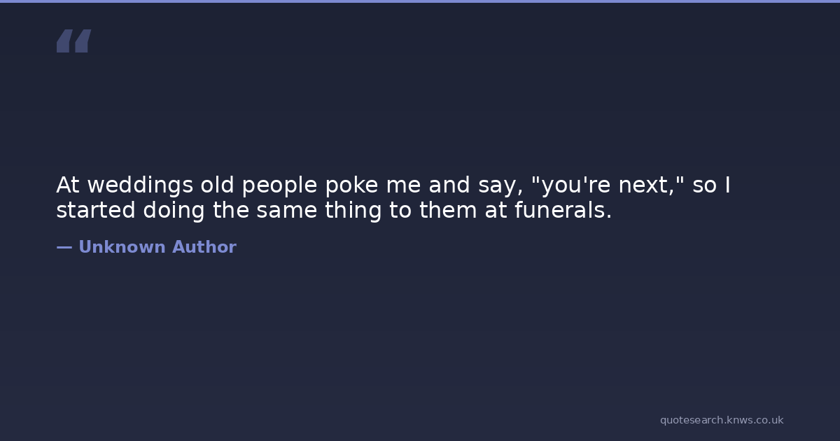 At weddings old people poke me and say, "you're next," so I started doing the same thing to them at funerals.