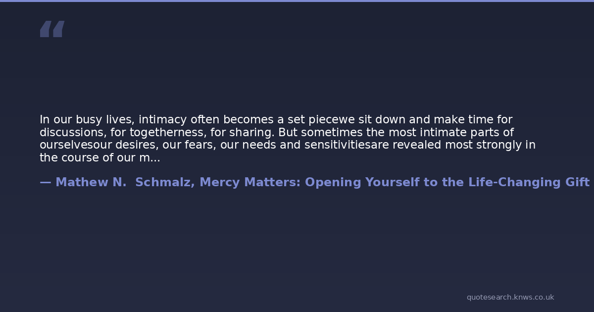 In our busy lives, intimacy often becomes a set piecewe sit down and make time for discussions, for togetherness, for sharing. But sometimes the most intimate parts of ourselvesour desires, our fears, our needs and sensitivitiesare revealed most strongly in the course of our mundane routines.